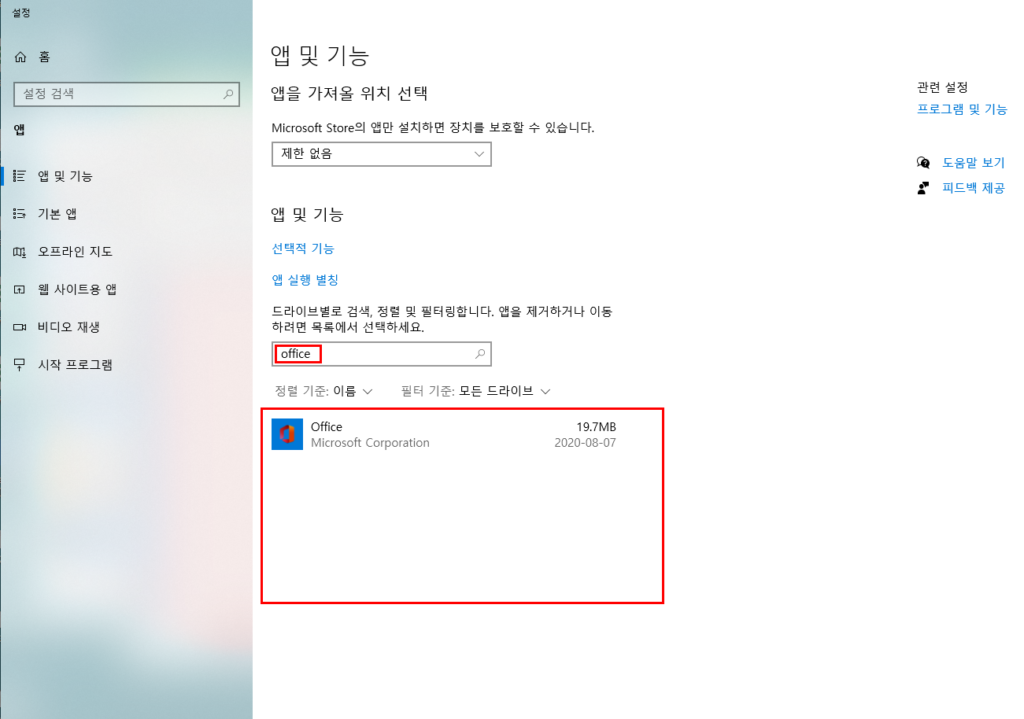 위와 같이 Office와 365 키워드로 검색하여 365 / Microsoft Office 앱이 있다면 모두 제거합니다.모든 제거가 끝났다면 이제 아래 설명에 따라 설치를 진행합니다.(윈도우 10, 11 이상의 운영체제에서만 설치 가능합니다.)