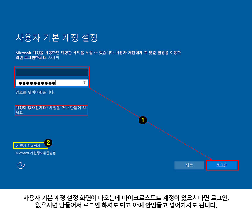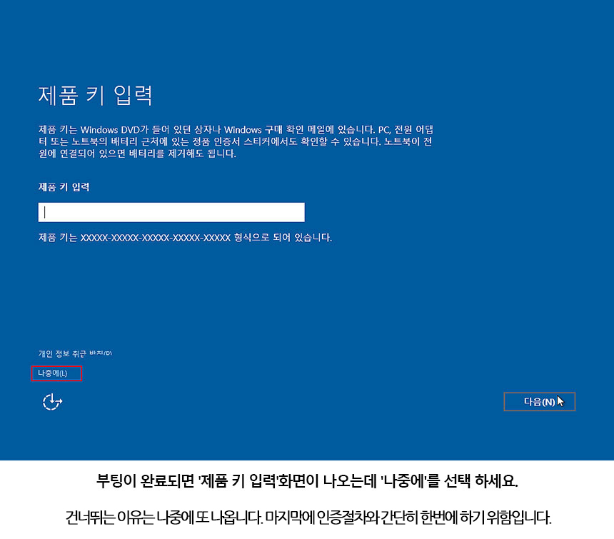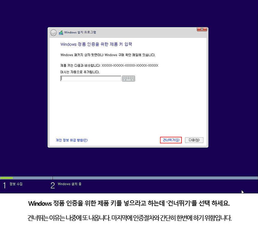 (건너뛰기가 없는 경우 ‘제품키가 없음’ 눌러 진행)