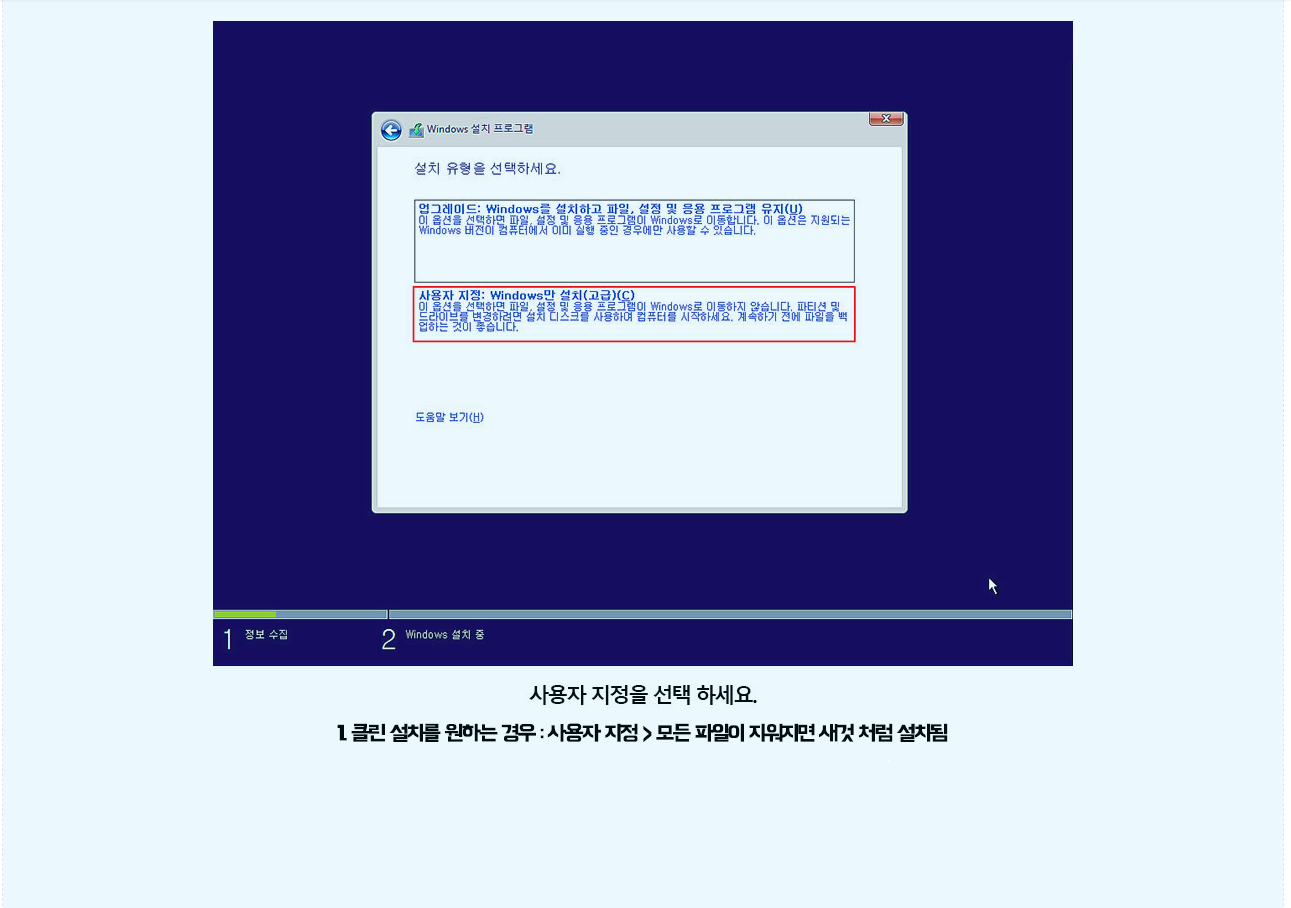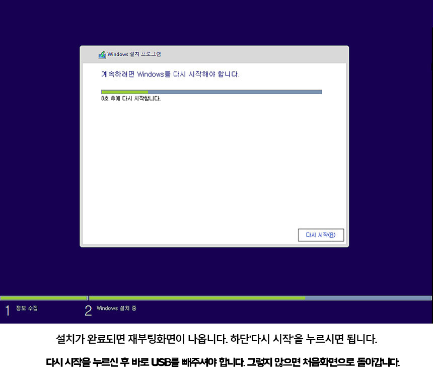 * 주의사항가끔 USB 구매 후 USB를 꽂은 상태로 setup.exe를 실행하시는 경우가 있습니다.그렇게 하시면 안되며, USB를 꽂은 채로 재부팅하여 USB 부팅을 하셔서 설치하셔야 합니다.USB 부팅은 홈페이지 상단 메뉴에서 USB 부팅법을 참고해주세요.