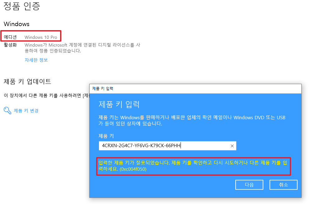 에디션과 주문하신 옵션이 일치하지 않는 경우 위와 같은 에러가 발생합니다.에러 발생 시 옵션과 알맞은 버전으로 재설치하시기 바랍니다.